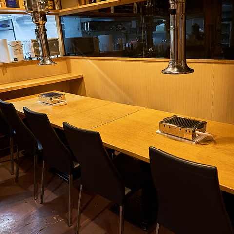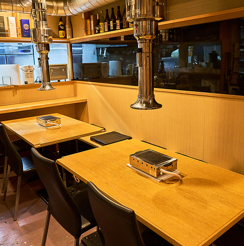 4~6名掛けのテーブル席です。喚起をしっかりしておりますので、煙たくならず、ゆっくりお食事を楽しんでいただけます。
