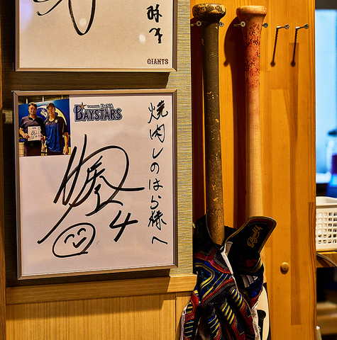 オーナーのゆかりがあるプロ野球界。有名選手のサインも展示しております!野球ファン垂涎な空間は食欲も引き立ちます。ご興味のある方は是非一度お越しください♪