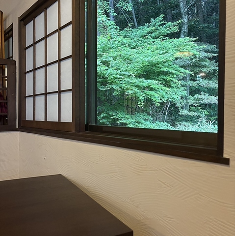自然に囲まれた環境の中、火鉢や囲炉裏を眺める癒しの和空間にてゆっくりとお食事を満喫していただけます。