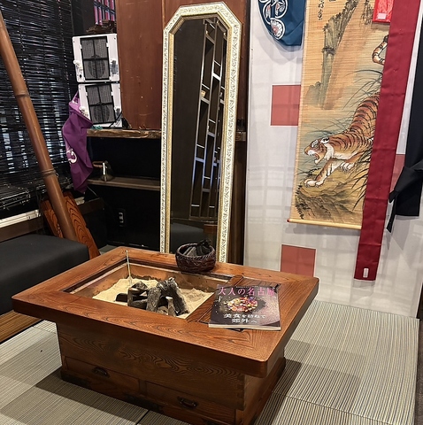 大自然の恵みを受けた山之一色町、日常の喧騒から離れたこの場所で、まるで江戸のような歴史のロマンあふれる和空間を当店自慢の和食とご一緒に満喫いただけます。火鉢や囲炉裏を眺めるひと時はどこか懐かしく、まさに憩いのひと時。女子会やデートでのご利用にもオススメです◎