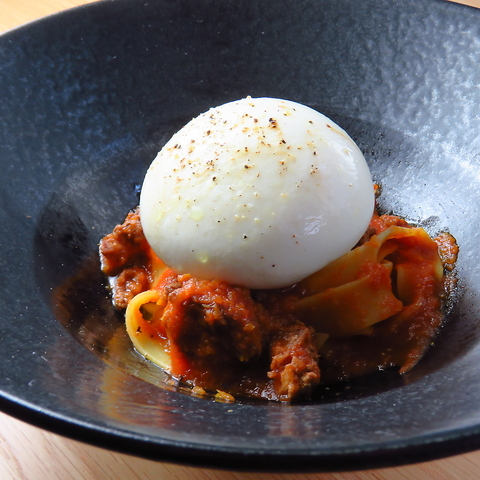 店内で丁寧に手作りした風味豊かなブッラータチーズを贅沢に使用し、見た目にも美しい一皿に仕上げました。じっくり煮込まれたお肉の旨みとボロネーゼソースが絡み合い、深い味わいを楽しめます♪チーズを溶かしてパスタと一緒に食べれば、一口で虜になること間違いなし!贅沢なひとときをご堪能ください。