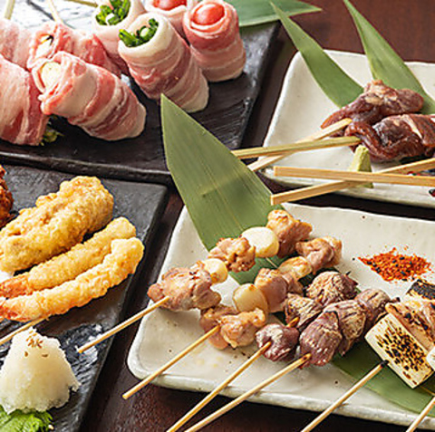 当店自慢の野菜巻き串と焼き鳥はリピーター続出の一品!