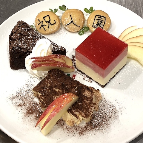 大切な日を彩る宝石箱のような一皿。濃厚ブラウニーや甘酸っぱいムースなど、多彩な味わいが次々と広がり、主役の笑顔を輝かせます。