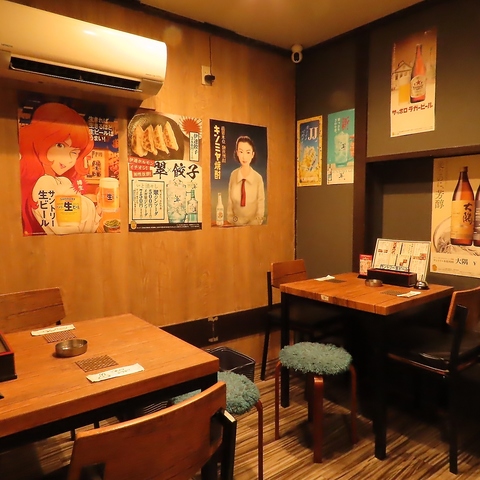 レトロな空間で、名物ホルモンをつまみに乾杯!コスパ最強の充実コースで、気の合う仲間と最高のひとときを。奥にあるテーブル席は、3名以上で半個室の利用が可能です。プライベート感がある空間で、会社の飲み会や大切な集まりにぴったり♪周囲を気にせず、ゆったりとした時間を過ごせます。