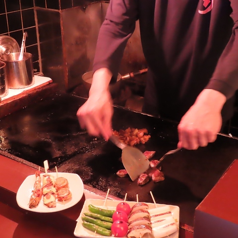 お店側で店員がカウンター内にある鉄板で焼いて提供するタイプの店です。