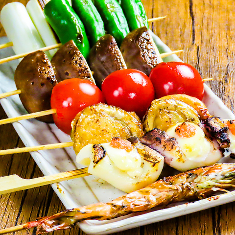 当店はお肉だけじゃない!野菜串&海鮮串などバリエーション豊富に取り揃えています。新鮮な季節の野菜を使った串は素材本来の旨みを引き出し、ヘルシーながら満足感も抜群。海鮮串は、新鮮な魚介を贅沢に使用し、香ばしさが魅力です!特に殻ごと食べられる、海老串(ソフトシェルシュリンプ)は串の中では1番人気です!
