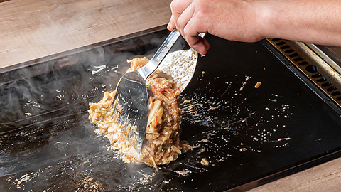 初めてのお客様も安心して楽しめる、焼き物のサービスを提供!全てスタッフが目の前で焼き上げる月島仕込みの本格もんじゃやお好み焼き、鉄板焼き。美味しさはもちろん、焼き上がる様子をお楽しみいただけます。