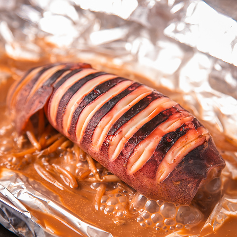 青森・岩手で獲れたスルメイカの肝の旨みが染み込んだ絶品!肝のタレが余ったら追いもやしがおすすめ!追いもやし 180円
