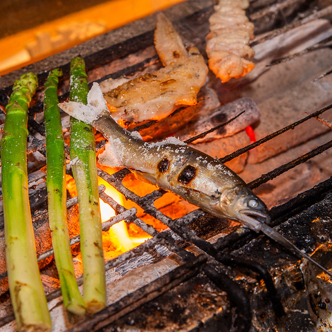 新鮮なお魚を目いっぱいお楽しみいただける≪本日の鮮魚盛り≫は、たい、サーモン、ひらす、シマアジ、いかなど季節に応じた旬の肴の盛りとなっております。1人前950円(税込)~ご用意可能です◎一品料理には、お刺身の他にもサバの塩焼きやヒラスカマの塩焼きなど焼き魚のご用意もございます!海の幸をご堪能あれ♪