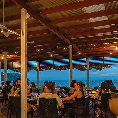 目の前に広がる海を一望できるカウンター席は、デートにぴったりの特等席。波の音をBGMに、夕日とともに過ごす時間はまさに特別なひととき。記憶に残るロマンチックな時間を演出します。