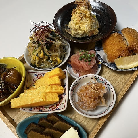 サニー自慢のおつまみを7から8種類お任せで少しずつ盛り込んでご提供!迷ったらコレ、水餃子に次ぐ推しメニューです!(人数分でご注文で提供させて頂きます。)
