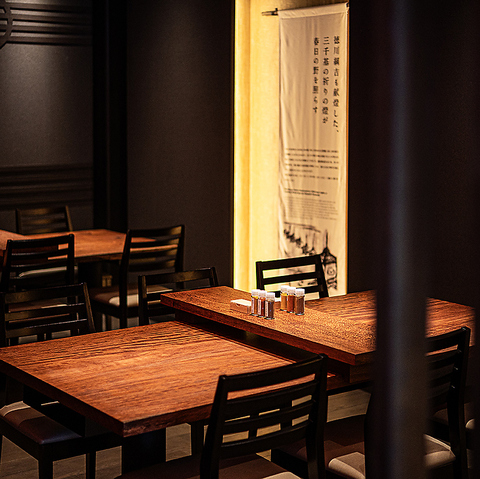店内は『和』を基調とした落ち着いた雰囲気でゆったりとお寛ぎ頂けますので、会社の接待や会食などにうってつけでございます。お座敷や個室のお席もご用意しておりますので、美味しい思い出を作りにぜひいらしてください。