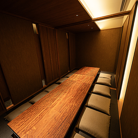 大切なおもてなしにふさわしい、上質な掘りごたつの個室。お客様の人数に合わせてご対応可能でございます。お気軽にお問い合わせください。他のお客様と距離感を保ってお食事をお楽しみいただけます。