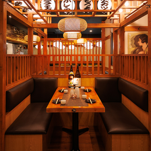 落ち着いた和の空間に設えられたテーブル席で、炭火焼のやきとんや鮮度にこだわった海鮮を堪能。飲み放題付きコースもご用意しております。和の風情を大切にしたテーブル席で逸品料理を楽しんでいただけます。気取らず過ごせる空間で、大切な方との語らいの時間をぜひご活用ください♪