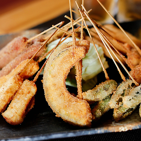 素材の味を楽しめるよう、衣は薄く・細かく。軽い食感の串揚げはついつい手も伸びてしまう!ビールとの相性も抜群★