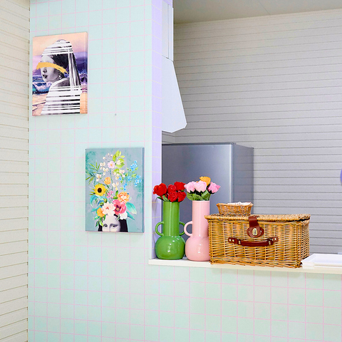 パステルグリーンの映える空間。街歩きの疲れをそっと包み込む、静かな心地よさ。