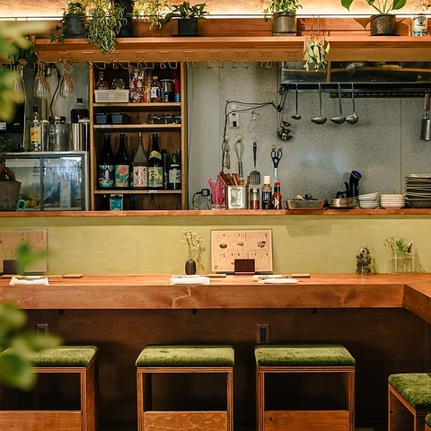 【6/1ニューオープン☆】植物が飾られたおしゃれな雰囲気が自慢の居酒屋◎緑と木の温もりを感じる落ち着いた空間です。少人数から大人数までご利用いただけます。同僚や友人との飲み会、女子会など、幅広いシーンで是非ご利用くださいませ。