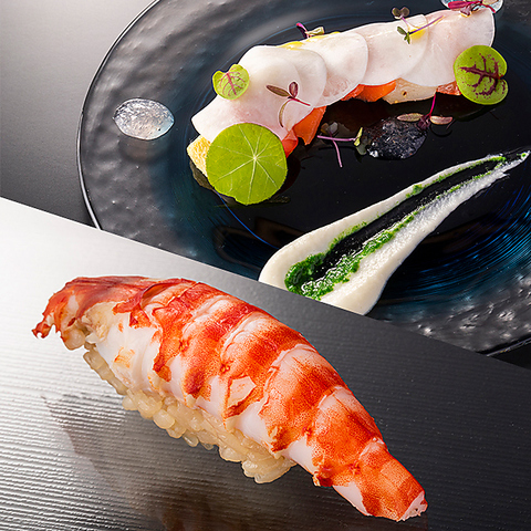 厳選された新鮮な握りと逸品料理を織り交ぜたコースをご用意しております。ランチは6000円(税込)から、ディナーは13000円(税込)から楽しめます。ひと手間加えた海産物を使用し、一番良い状態で味わっていただける料理と共に、旬のお酒もご用意。特別なひとときをお過ごしくださいませ。