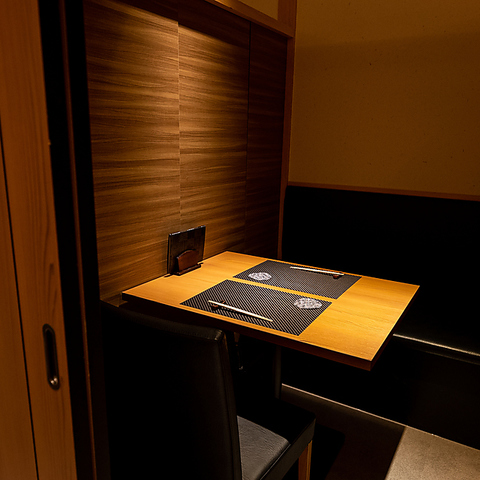 幅広い完全個室席は、落ち着きのある雰囲気で、周囲を気にせずゆったりとお寛ぎいただけます。記念日や誕生日、接待に最適な空間です。プライバシーを重視した設計が施されており、特別なシーンをより一層引き立てます。大切な時間を、ぜひ当店でお過ごしくださいませ。