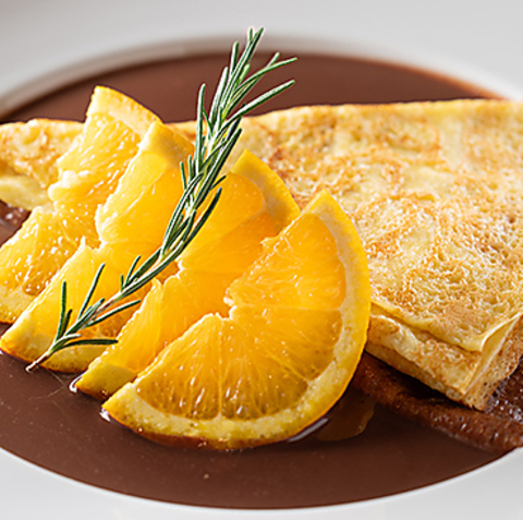 目の前でご要望に合わせてお作りもできるカクテルは、幅広い種類をご用意。限定メニューもあり、こだわりの一杯をご堪能いただけます。また、全時間帯で楽しめるクレープもご提供。カカオのコクとオレンジの酸味がマッチしたチョコクレープや贅沢なトリュフクレープ、バターをたっぷりと使ったバタークレープがございます。
