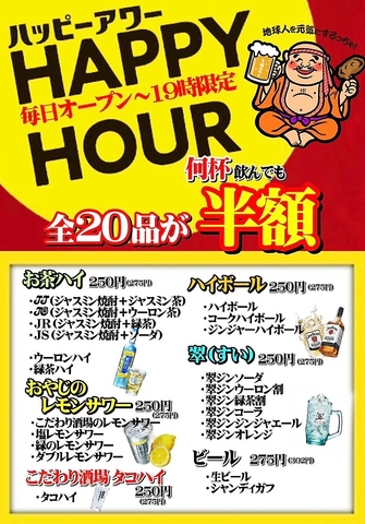 ハッピーアワー★象ドリンクが全品半額!19時まで適応可能です!