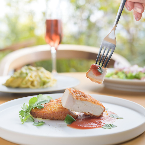 ランチはパスタなどの単品も気軽にお楽しみいただけます。カフェタイムには特製パンケーキや季節に合わせた様々なデザートを多数ご提供しています。フリードリンクとコースのパーティープランもご用意◎