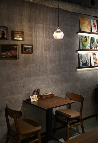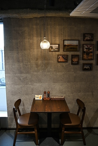 テーブル1: ゆったりと過ごせる2名様用のテーブル席は、開放感がありながらも、周りとほどよい距離感で落ち着けるつくり。気取らず会話を楽しめる空間は、デートやちょっとした食事にもぴったりです。目の前で焼き上がる鉄板焼きを、ゆっくり味わいながらお過ごしください。