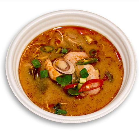 スープだけでも大満足!海老の旨みとハーブの香りが広がるトムヤムクンは、お弁当のおともにも人気です。