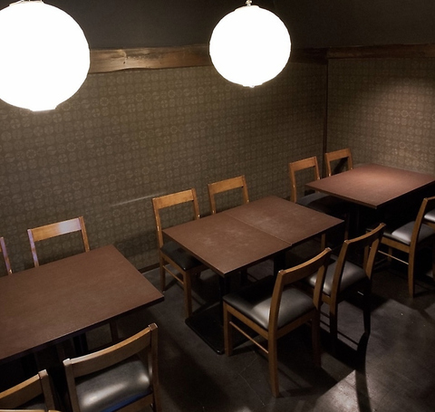 当店は、和の趣を感じるインテリアが施されています★シックな照明と木の温もりを感じる内装が、落ち着いた雰囲気を演出。特に、ガラスのシェードが印象的な照明は、柔らかな光を放ち、居心地の良い空間を作り出しています。おひとり様から大人数まで、心地よい空間でお楽しみいただけます☆心温まるひとときをご堪能ください!