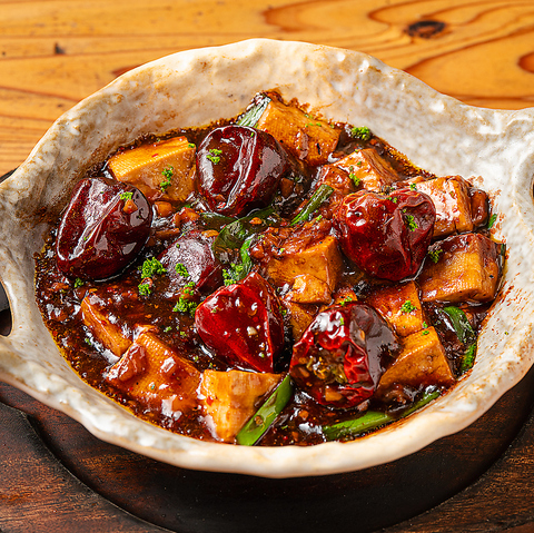 5種類以上の香辛料を使用してつくる当店の麻婆豆腐は、かなりスパイシー★ただただ辛いだけではなく、辛い中にも旨味があるのが特徴!どなたでも食べれる当店一番人気のメニューです!!是非一度ご賞味ください!!