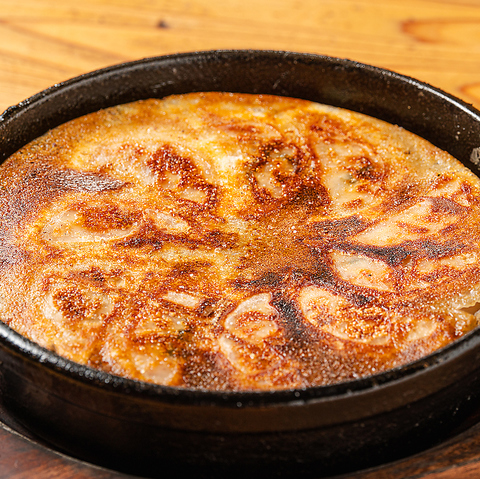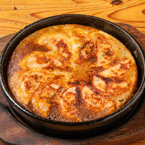 「鉄鍋餃子」パリッとした羽根付きの皮目とジューシーな旨味をたっぷり味わえます。ホワイトペッパーのピリッとした後味がクセになること間違いなし!