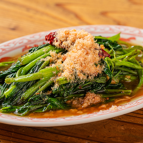 空芯菜炒めは中華の定番!味噌風味のタオチオとオイスターソースのコクのある味付けは、ごはんとの相性も◎のどごしのよい冷えたビールとも相性抜群◎