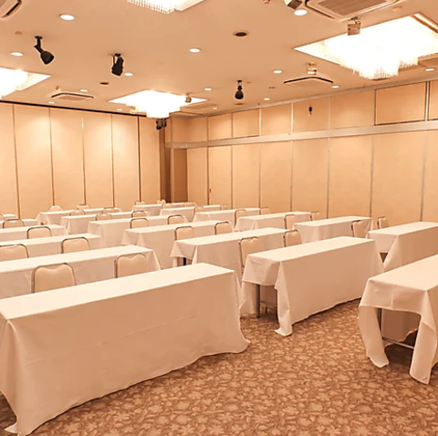 【最大120名様を収容可能なキャパシティー】ちょっとした会合や大規模なレセプション、忘新年会・卒団式など時期によるご宴会にも対応しています。幅広いプランときめ細やかなサービスで、お客様のさまざまなニーズにお応えします。ホテルならではの特別な雰囲気の中、美味しい料理で充実したひとときをお過ごしください。