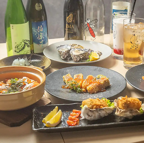 当店では、牡蠣の産地にこだわり、各地の新鮮な牡蠣を取り揃えております!生、蒸、炙りなど多彩な牡蠣料理や、サーモンといくらのレアかつ、刺身など自慢の海の幸をご堪能いただけます。また焼酎や日本酒が豊富に揃っており、海鮮料理との相性も抜群!お好きなドリンクを選びいただきまして、特別な時間をお過ごしください♪