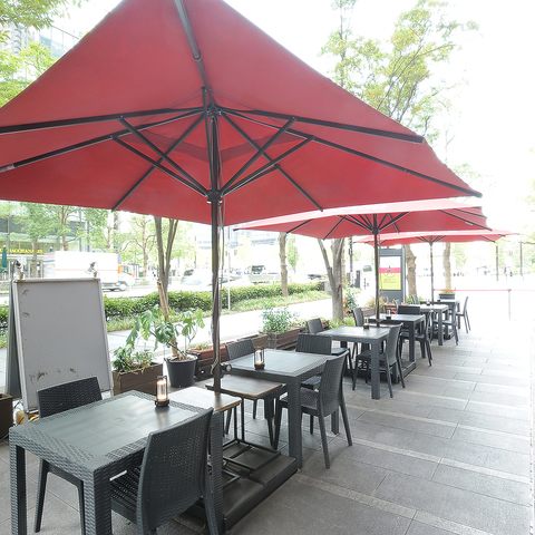 ご予約ですぐに埋まってしまう大人気のテラス席。2名様からご予約いただけます。※雨天等の場合、店内の席が満席ですと席の変更が出来ない可能性がございますことをご了承願います。