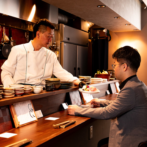 カウンター越しに調理する工程を目の前で楽しめる特等席。お一人様でもご利用いただけます。スタッフが心を込めておもてなしいたしますので、お気軽にお声掛けください。