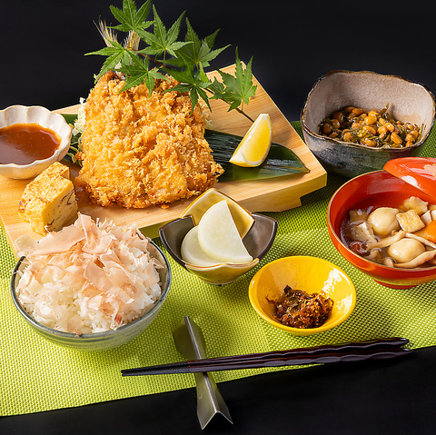 脂の乗ったとろ鯖を、炭火で丁寧に焼き上げました。香ばしい皮目と、ふっくらとした身の旨味が口いっぱいに広がります。削りたての鰹節が香るご飯に、滋味深い汁物、そして箸休めにぴったりのお漬物と、バランスの取れた定食です。日本の伝統的な味わいで心温まるひとときを存分にお楽しみください。※画像は一例です