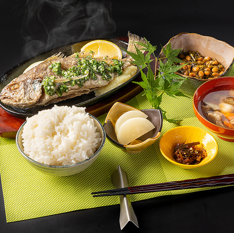 豊かな自然で育った岩手県産銀鮭を、炭火でじっくりと焼き上げました。ふっくらとした身は脂が乗り、炭火の香ばしい香りが食欲をそそります。ご飯が進む味わいで、栄養も満点です。削りたての鰹節が香るご飯、滋味深い汁物、そして箸休めにぴったりのお漬物と、心温まる一膳をぜひご堪能ください。※画像は一例です