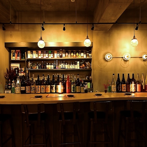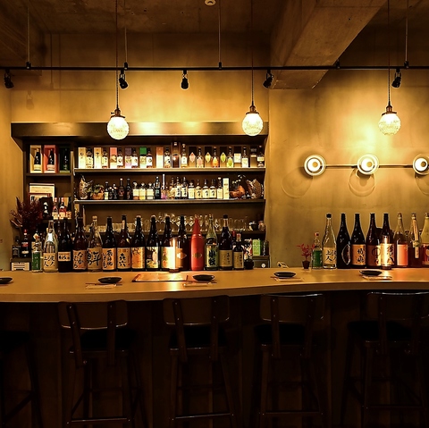 照明に照らされたカウンター席はおしゃれで居心地の良い空間です。お1人様でも大切な人とも様々なシーンでご利用いただけます。