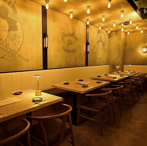 一歩足を踏み入れれば素敵空間が広がります。照明が照らすおしゃれなお席で特別なひとときをお過ごしください。