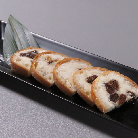 自家製のレーズンバターパンは、フランスパンをベースにした新感覚の逸品。冷たい状態で味わうと、アイスチックな食感が楽しめ、溶けるとバタークリームの旨味が広がります。おつまみとしても、デザートとしても楽しめる、2つの顔を持つこのパンは、どんなシーンでも大活躍!
