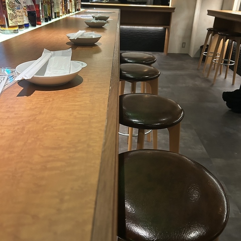 ゆったりとした広めのカウンター席をご用意しております。カウンター席は友人や同僚との会話を楽しむのにも最適◎広々としたスペースで、リラックスしながらお酒や料理をお楽しみいただけます。バーテンダーの技を間近で見ることもできます♪