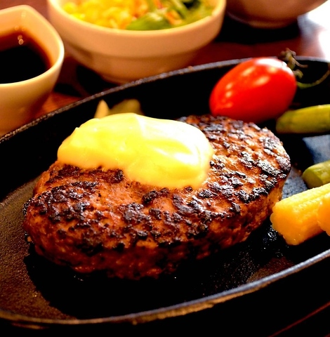 国産牛を厳選し、職人が心を込めて作り上げたハンバーグをお楽しみください。ふっくらとした食感が口の中で広がり、濃厚な甘さを感じられます。また、牛タンが加わることで、コリっとした独特の歯ごたえも楽しめ、二種類の異なる食感が絶妙に組み合わさっています。