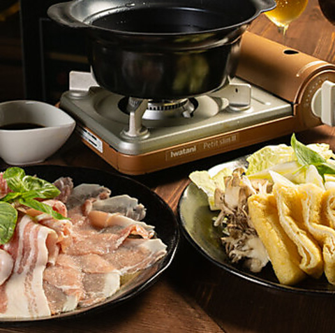 カウンター席では、すき焼き、しゃぶしゃぶ、ホルモンの3種の鍋料理をお楽しみいただけます。厳選した出汁で煮込まれたスープは、素材の旨みが溶け込み、深い味わいが特徴です。さらに、ホタテやえび、イカゲソの鉄板焼きもご用意しておりますので、ぜひ当店自慢の料理をお試しください。