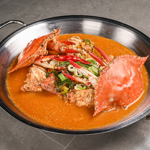 新鮮なカニを甘辛い特製のコチュジャンベースのタレで和えた韓国料理の逸品です!ピリッとした辛さと濃厚な旨味が絶妙に絡み、食欲をそそる一皿に。白ご飯との相性も抜群で、一口食べればやみつき間違いなしです♪是非ご賞味ください!!