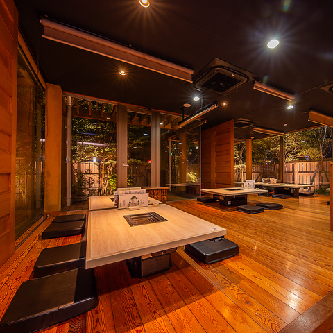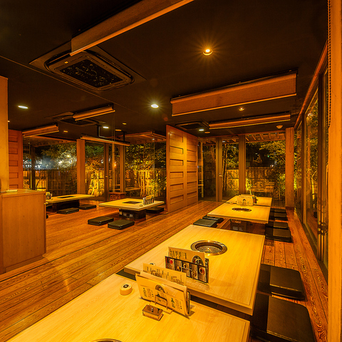 中庭が見渡せる開放感あふれる空間。ゆったり余裕のある造りですので、大人数でのご宴会もお任せください◎
