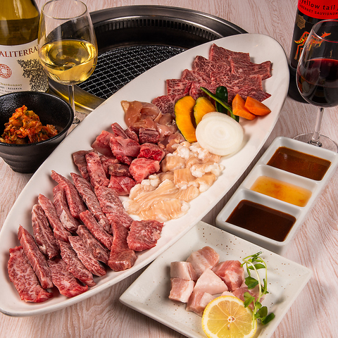 肉屋直営の当店が自信をもって仕入れるA4ランク以上の黒毛和牛を贅沢に味わえる「焼肉盛り合わせ」にご注目◎中でも「二人盛Bセット」は、5000円(税込)とは思えない大ボリュームでお腹いっぱいのセット☆ワンランク上の焼肉を味わえる「和牛特選盛」は特別な記念日にもおすすめ。思い出に残る最高の食体験をご提供します!