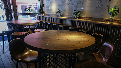 4名様でご利用いただけるテーブル席を2卓完備。テーブルや椅子はエイジングの風合いがあり、まるでテキサスのBBQショップにいるかのような雰囲気を楽しめます。広々とした丸テーブルには、豪快に焼き上げたBBQなどの料理が華やかに並び、食事がさらに楽しくなること間違いなし!仲間やご家族、女子会でのご利用に最適です。