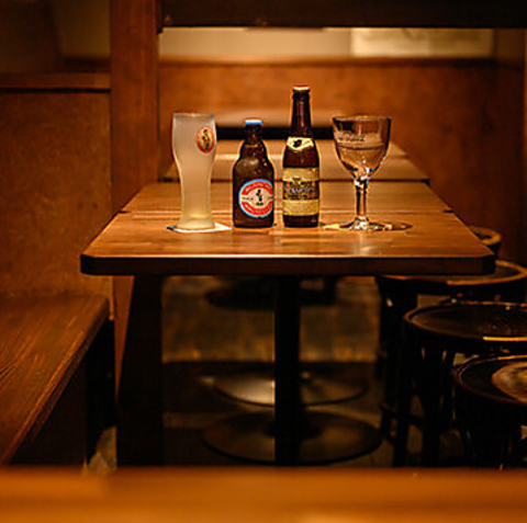 友人や仲間と楽しいひとときを過ごすのにぴったりのお席。落ち着いた雰囲気の中で、ベルギービールを楽しめます。