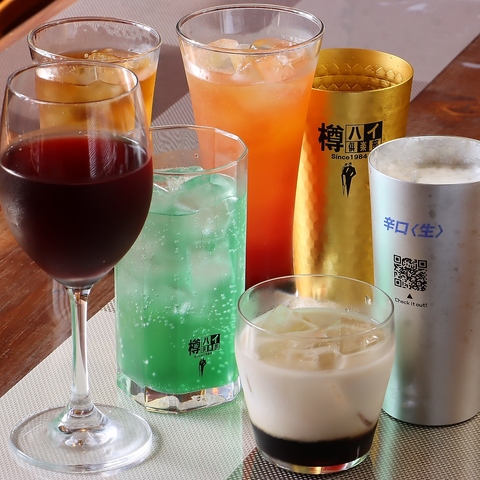 お集まりの場にぴったりの飲み放題。単品ではもちろんコースのご注文でお得にお愉しみいただけます◎